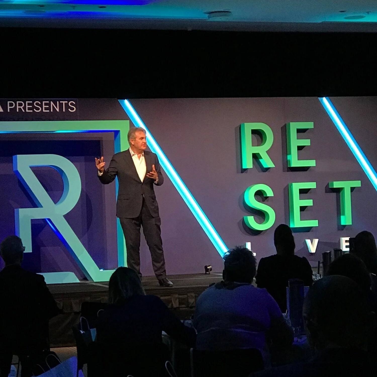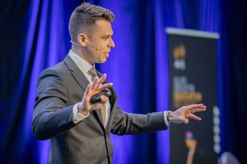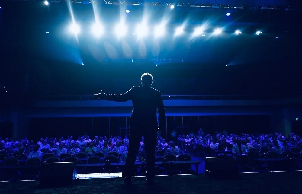 Hybrid event: live presentation at a venue streamed to an online audience